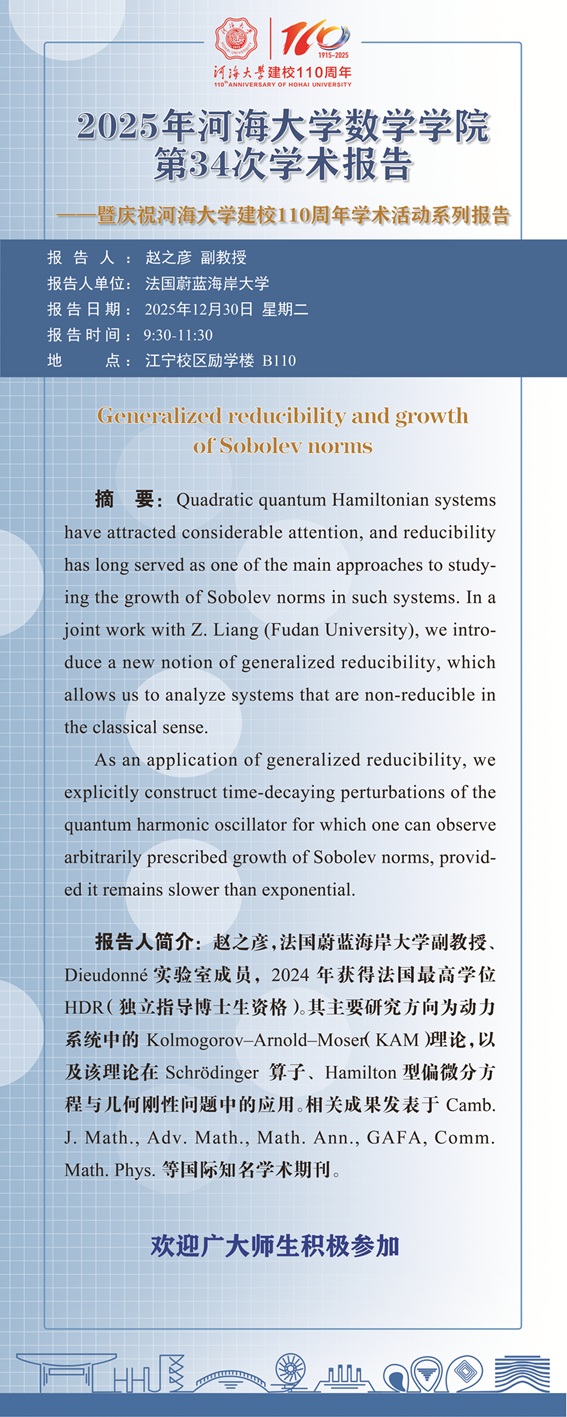黑料不打烊 第34次学术报告:Generalized reducibility and growth of Sobolev norms