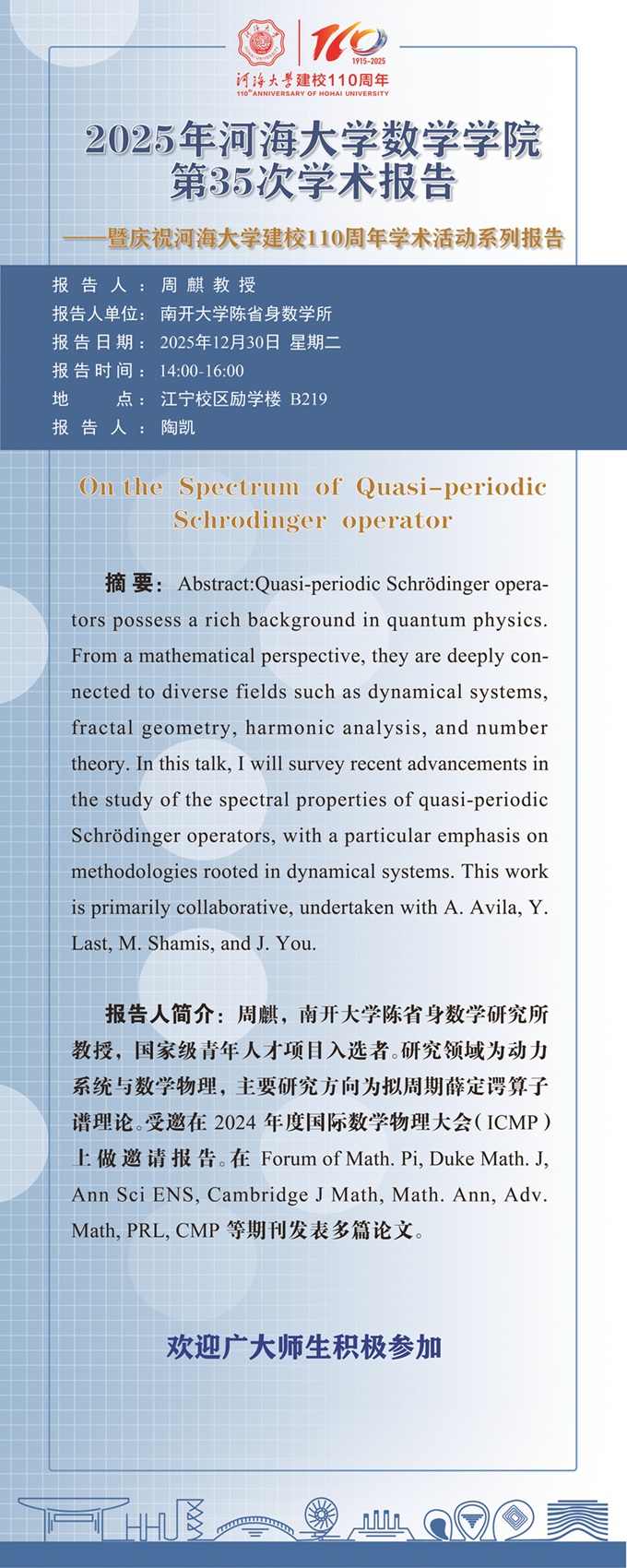 黑料不打烊 第35次学术报告:On the Spectrum of Quasi-periodic Schrodinger operator