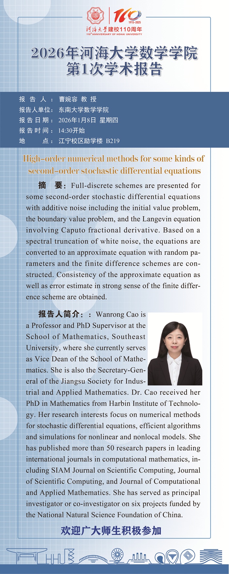 黑料不打烊 2026年第1次学术报告:High-order numerical methods for some kinds of second-order stochastic differential equations