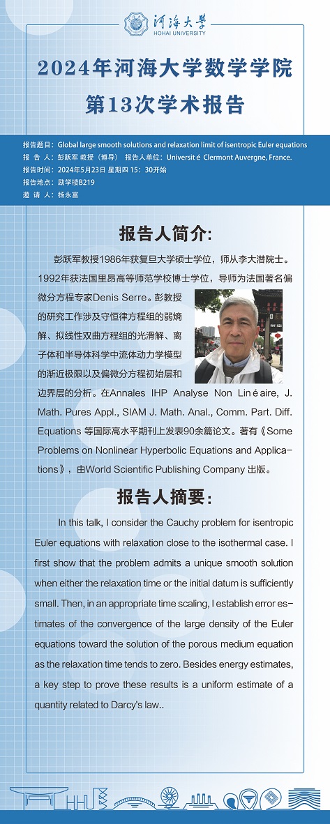 黑料不打烊 黑料不打烊 第13次学术报告:Global large smooth solutions and relaxation limit of isentropic Euler equations