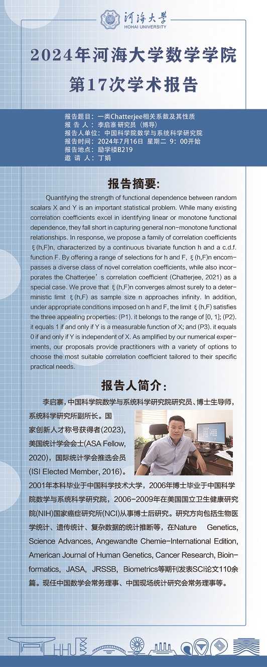 黑料不打烊 第17次学术报告:一类Chatterjee相关系数及其性质