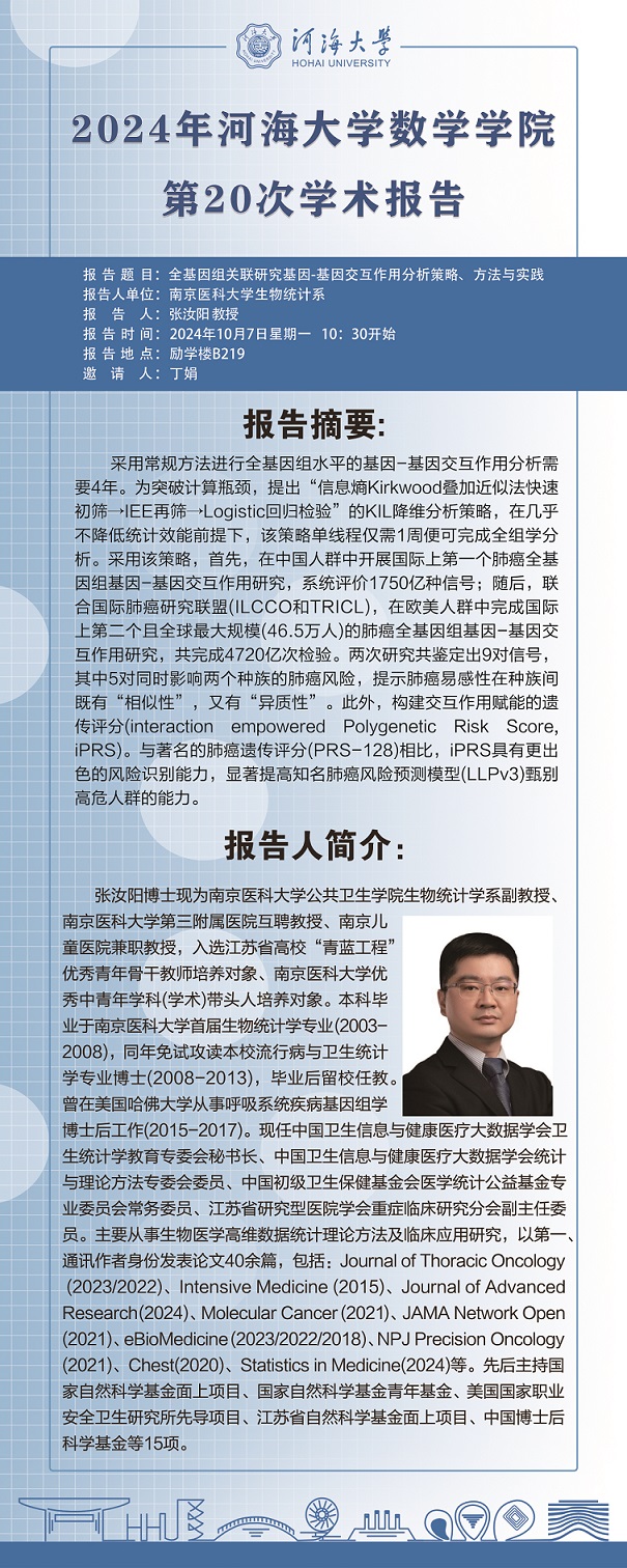 黑料不打烊 第20次学术报告:全基因组关联研究基因-基因交互作用分析策略、方法与实践
