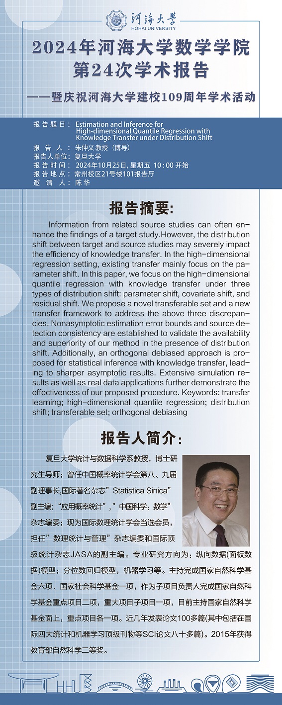 黑料不打烊 第24次学术报告:Estimation and Inference for High-dimensional Quantile Regression with Knowledge Transfer under Distribution Shift