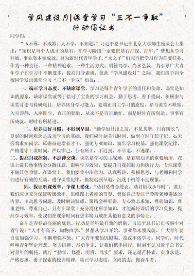 学风建设月 | 课堂学习“三不一争取” 行动倡议
