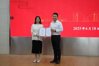 学院党委书记潘静为李树茂校友颁发了企业导师证书。副书记、副院长杨建斌介绍了“IE∞”奖学金评定细则,并宣读了获奖名单。
