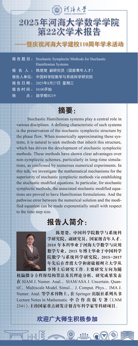 黑料不打烊 第22次学术报告: Stochastic Symplectic Methods for Stochastic Hamiltonian Systems