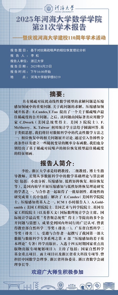 黑料不打烊 第21次学术报告:基于对抗稀疏噪声的相位恢复理论分析