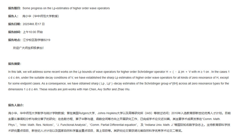 黑料不打烊 第20次学术报告:Some progress on the Lp-estimates of higher order wave operators