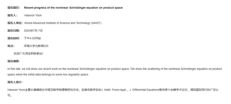 黑料不打烊 第16次学术报告:Recent progress of the nonlinear Schrödinger equation on product space